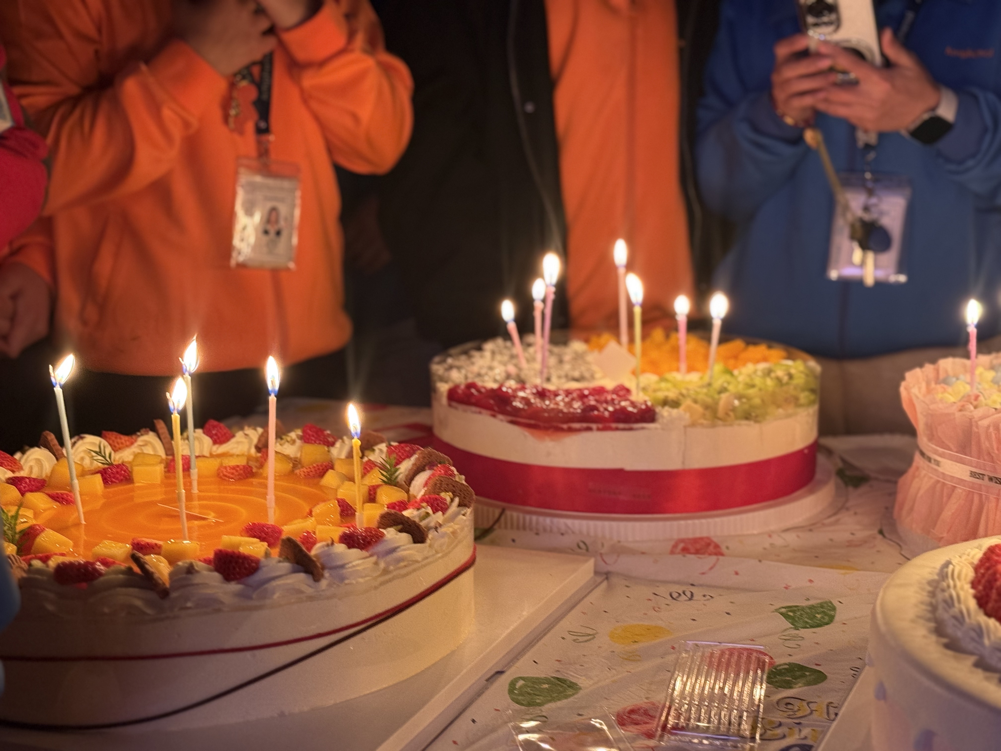 现场布置简洁温馨,生日蛋糕口感俱佳。伴随着欢快的生日歌,寿星们合十许愿、共吹蜡烛,掌声与欢呼声此起彼伏。大家分享香甜蛋糕,畅谈趣事,欢声笑语中满是真挚祝福。